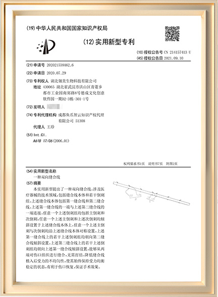 • 目前已注册专利数量13件。其中发明专利8件,实用新型专利5件。